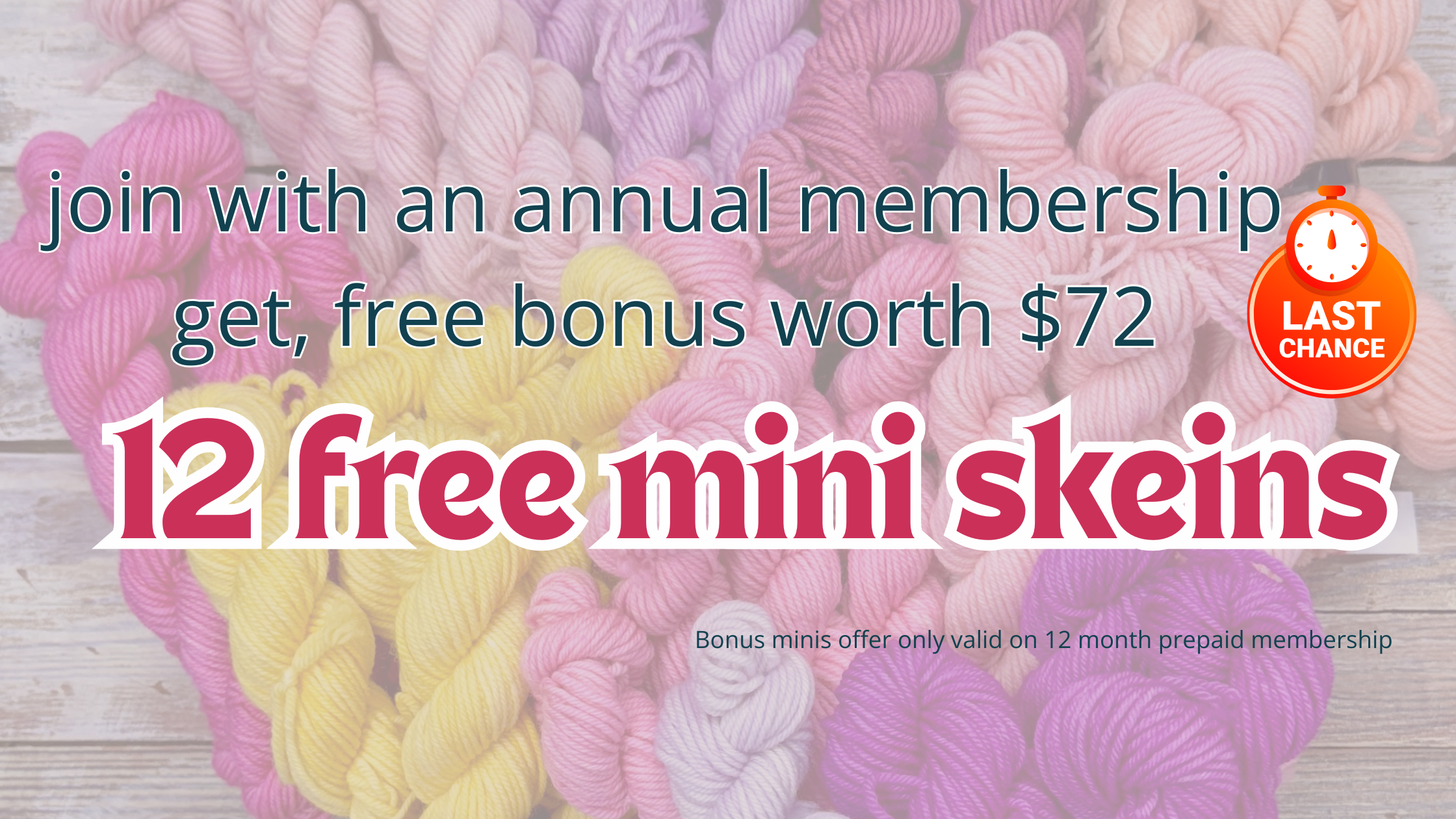 Included each month is 2 free knitting patterns, crochet pattern recommendations, exclusive discount code, monthly virtual crafting group, annual make-a-long.