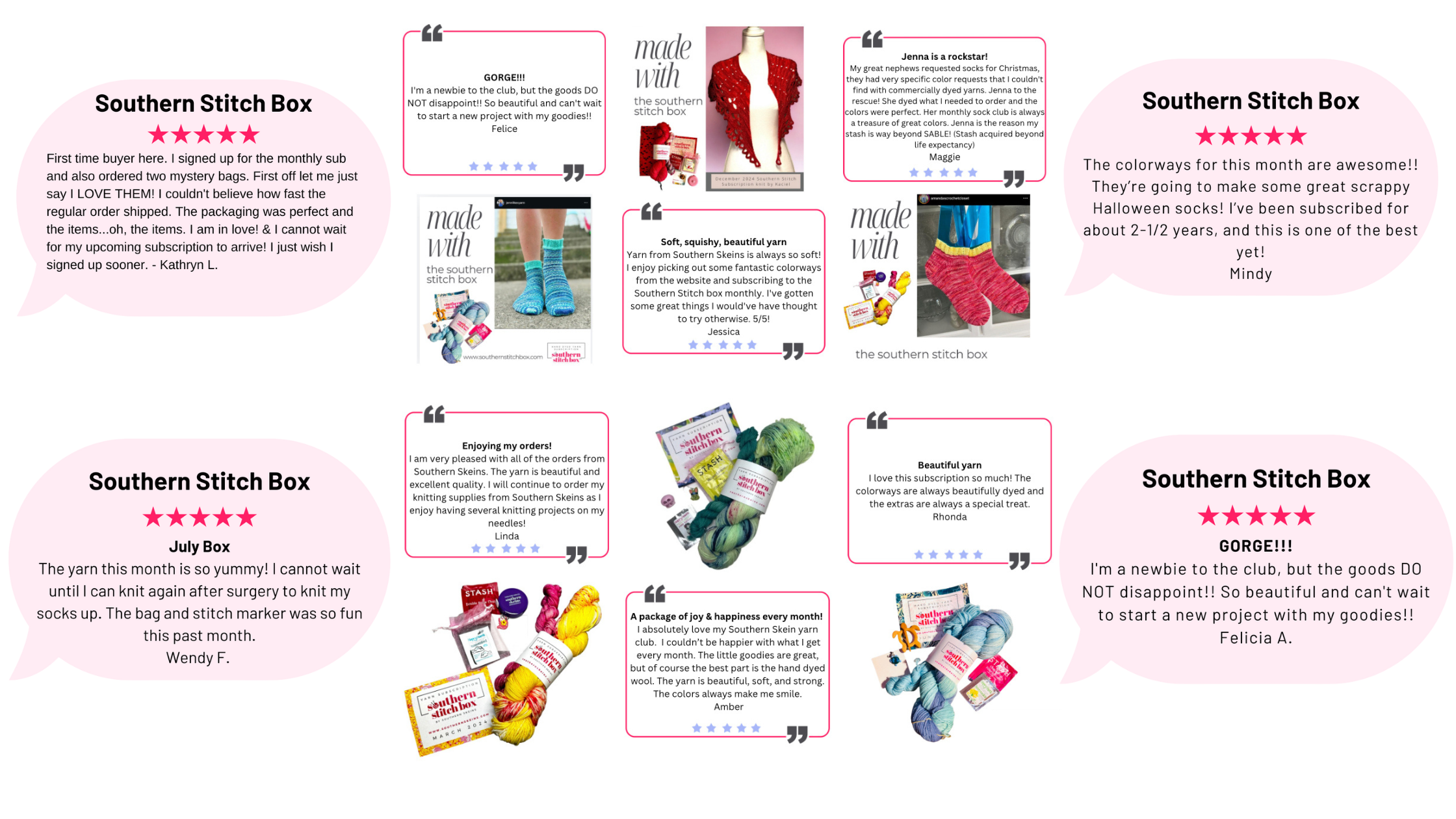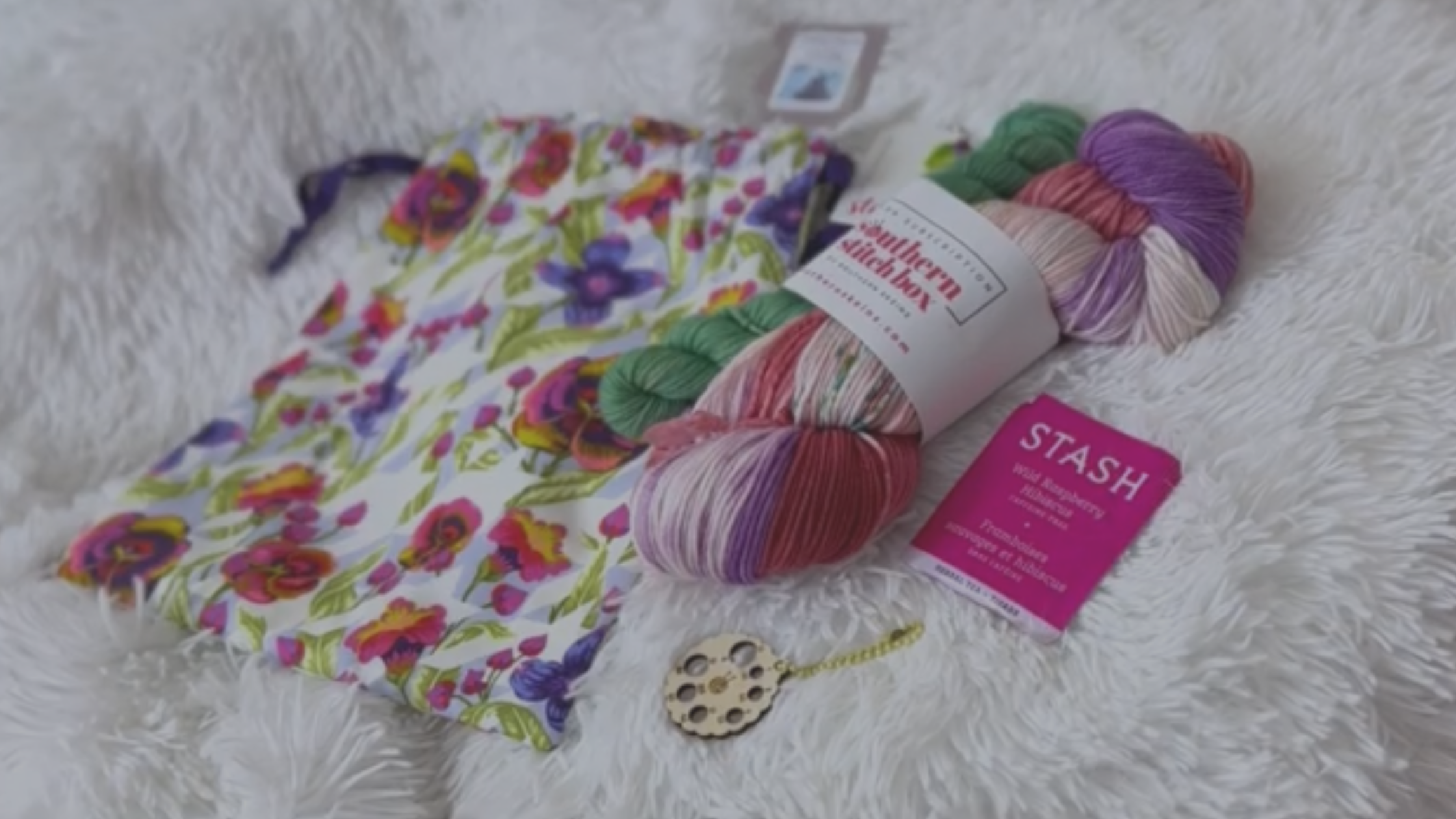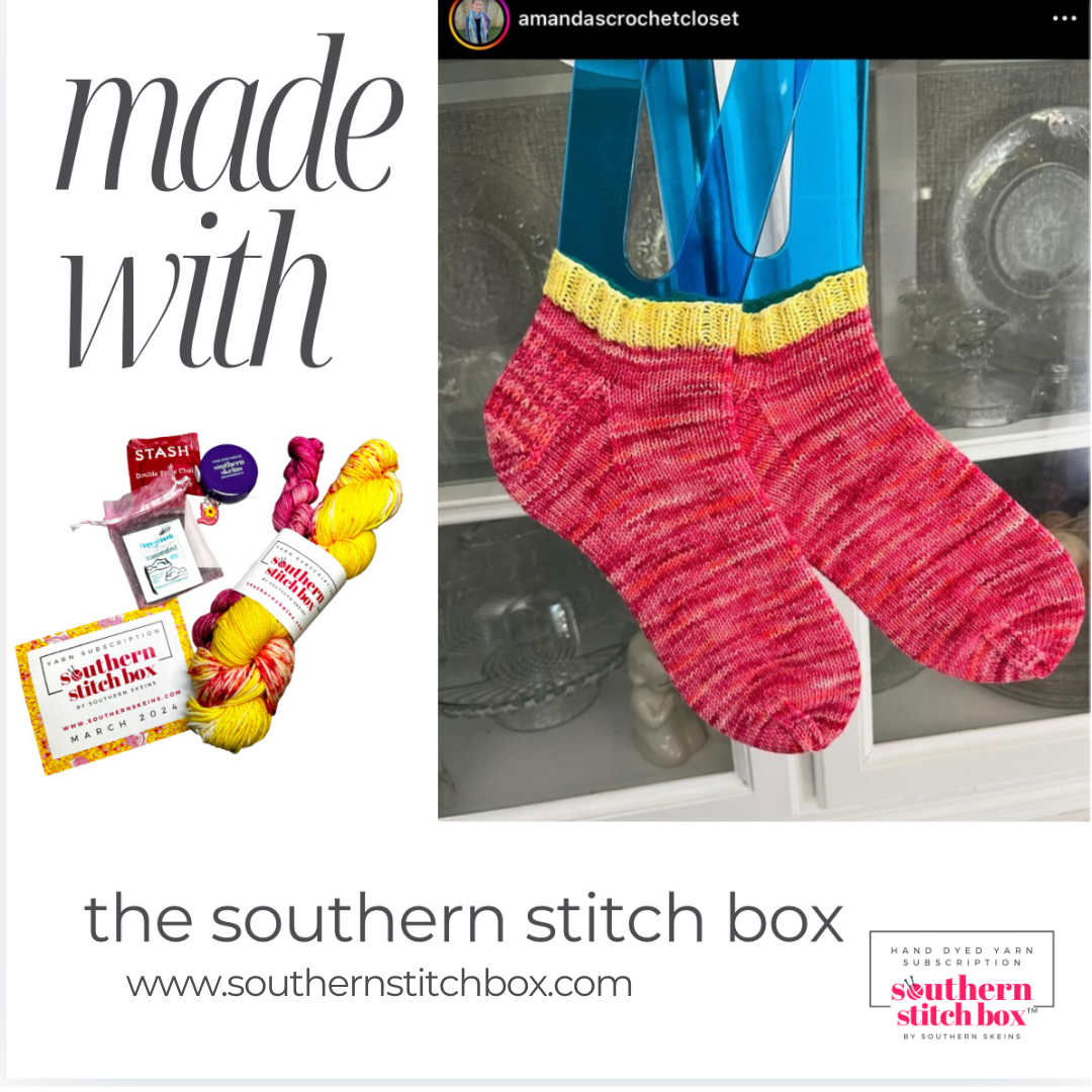 The Double the Yarn option is the above and two 100 gram skeins and two 20 gram mini skeins in your choice of sock, DK, or worsted weight yarn, plus a goodie bag of surprise items including a tool or notion.