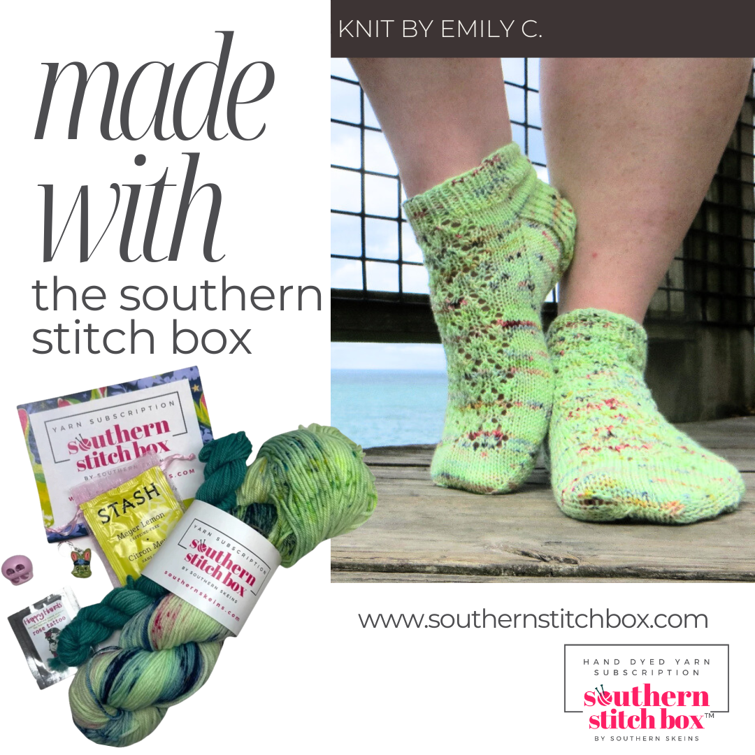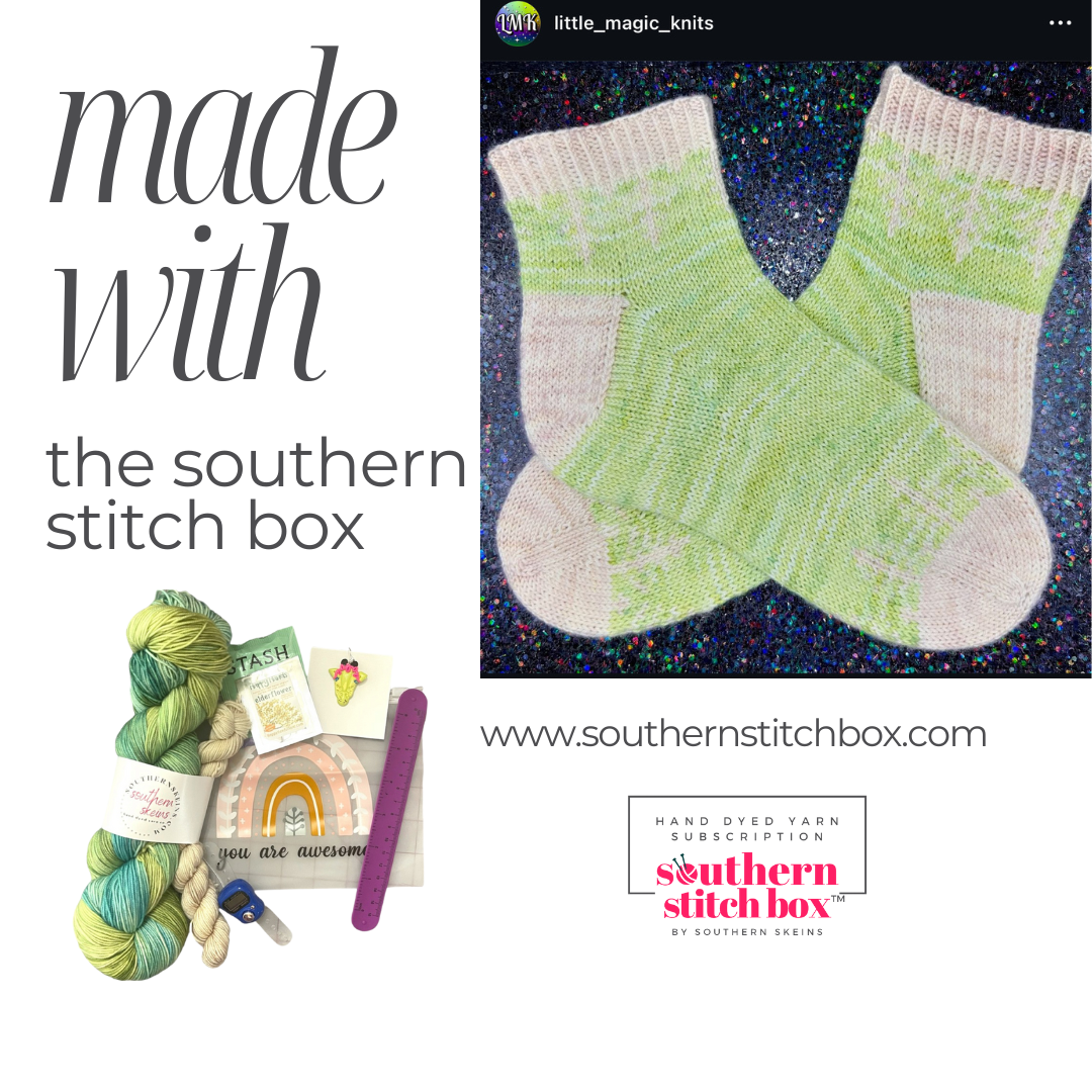 The Deluxe option is the above and two 100 gram skeins and two 20 gram mini skeins in your choice of sock, DK, or worsted weight yarn, plus a goodie bag of surprise items including a tool or notion and a handmade project bag.